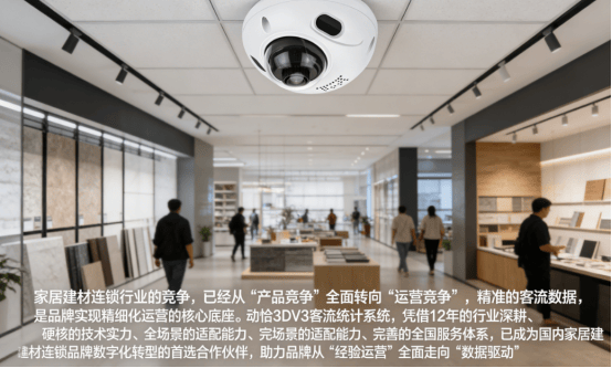 动恰 3DV3 客流统计系统,以 3D AI视觉客流摄像机为硬件核心,以客流管家数智云平台为分析大脑,针对家居建材连锁行业的场景特性与核心痛点,实现全维度的价值赋能。