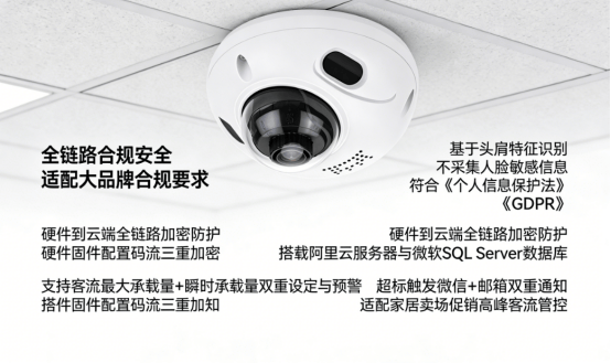· 基于头肩特征识别,不采集人脸等敏感信息,完全符合《个人信息保护法》《GDPR》隐私合规要求,彻底规避家居连锁品牌的合规风险;