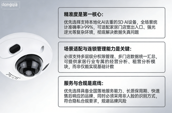 优先选择支持本地化 AI 去重的 3D AI设备,全场景统计准确率≥99%,可适配家居门店宽出入口、强光逆光等复杂环境,彻底解决数据失线. 场景适配与连锁管理能力是关键: